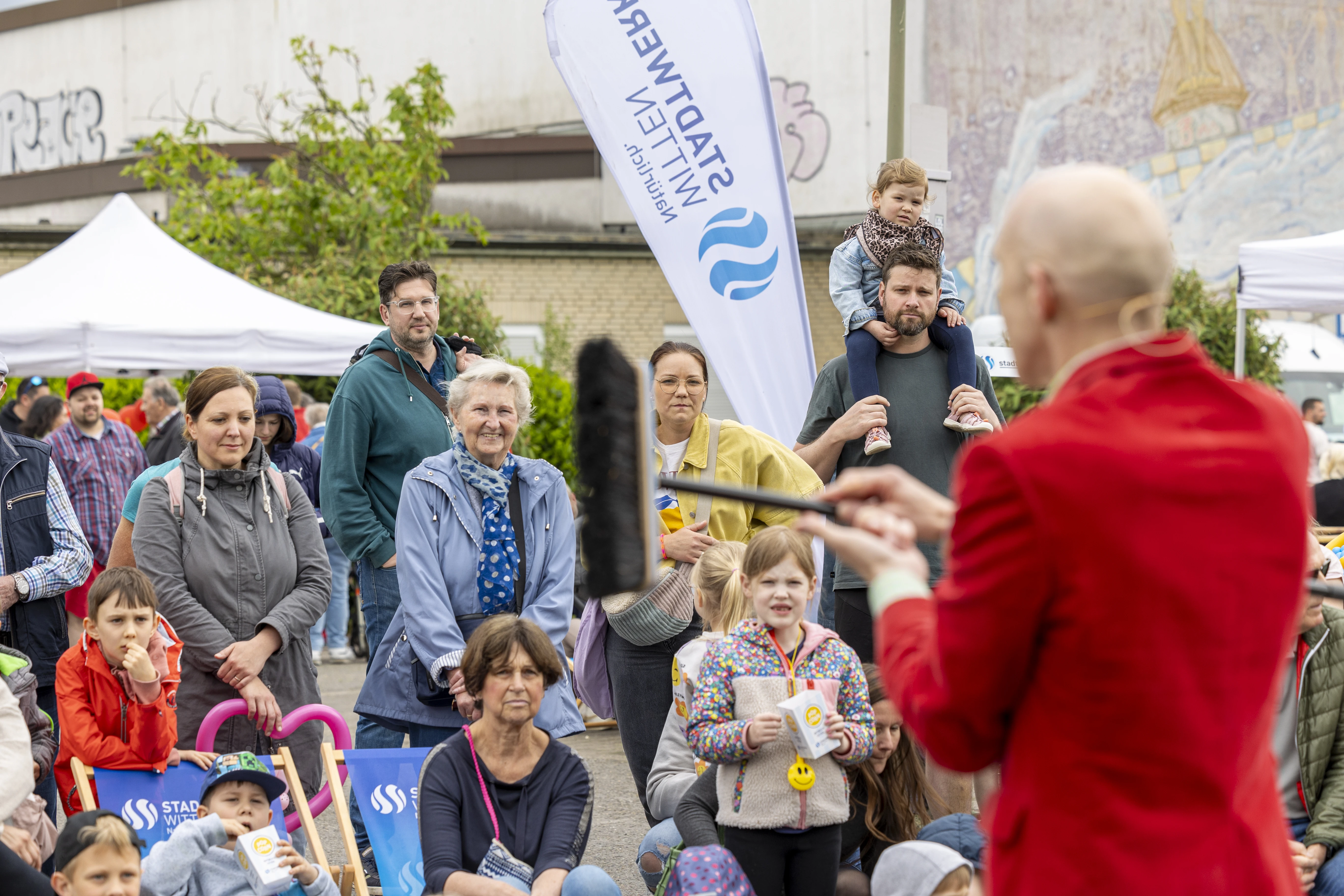 Neben Gratis-Eis für die Kinder, Unterhaltung mit den Physikanten, Clown Aki und der Band 38+ gab es allerlei Aktionen – zum Beispiel konnten Original-Fliesen des Bades mit exklusiver Gravur gegen eine Spende als Souvenir mitgenommen werden.